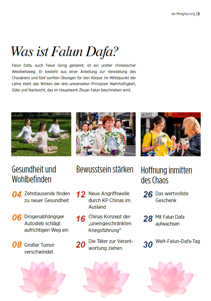 Zeitschriften Minghui International 2025 herunterladen >> Minghui International 2024 herunterladen >> Minghui International 2023 herunterladen >> Minghui International 2022 herunterladen >>